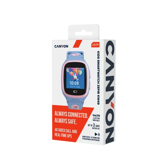 • Obchodní název Canyon Kids Watch ZEFIR KW-49 E-SIM 4G GPS WiFi Video Music Games, Pink&Blue